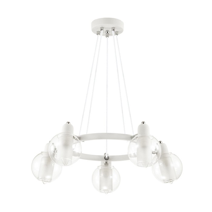 Люстра подвесная Lumion Rita 3648/5 белая E14 5х40W 220V наиболее интересный вариант для комнат и помещений с высокими потолками. Отличается не только надежностью и высоким качеством исполнения, но также имеет отлично продуманный, запоминающийся дизайн. Высококачественные материалы, такие как металл, стекло, гарантируют долгий срок службы и бесперебойную работу изделия. Благодаря хорошей мощности светильника в 5х40 Вт, становится возможным осветить достаточно большое пространство.