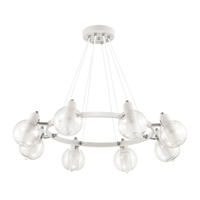 Люстра подвесная Lumion Rita 3648/8 белая E14 8х40W 220V наиболее интересный вариант для комнат и помещений с высокими потолками. Отличается не только надежностью и высоким качеством исполнения, но также имеет отлично продуманный, запоминающийся дизайн. Высококачественные материалы, такие как металл, стекло, гарантируют долгий срок службы и бесперебойную работу изделия. Благодаря хорошей мощности светильника в 8х40Вт, становится возможным осветить достаточно большое пространство.