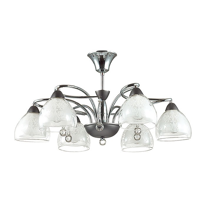 Люстра подвесная 3080/ серии Sabina оформлена в современном стиле. Люстра состоит из плафонов, изготовленных из двойного стекла, нижняя часть которого матовая, а верхняя - прозрачная с вензельным рисунком, и арматуры изысканного цвета никель-хром, украшенной подвесками из стекла в виде капли. Данная модель еще раз доказывает, что роскошь возможна и без излишеств. Необходимо использовать лампы с цоколем E14. Мощность 6x60W позволяет освещать территорию площадью до 18 кв. м ровным, приятным светом.