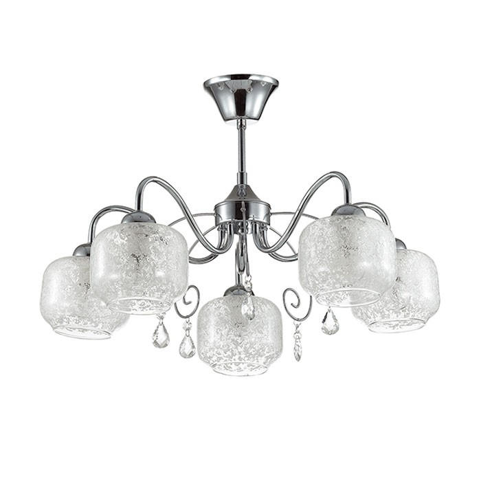 Люстра подвесная 3079/5 серии Venta оформлена в современном стиле. Люстра состоит из плафонов, изготовленных из стекла с рисунком и классической хромовой арматуры, украшенной хрустальными подвесками. Нежный рисунок на плафонах, а также обтекаемая форма арматуры придает данной модели необычайную легкость. Необходимо использовать лампы с цоколем E14. Мощность 5x40W позволяет освещать территорию площадью до 10 кв. м ровным, приятным светом.