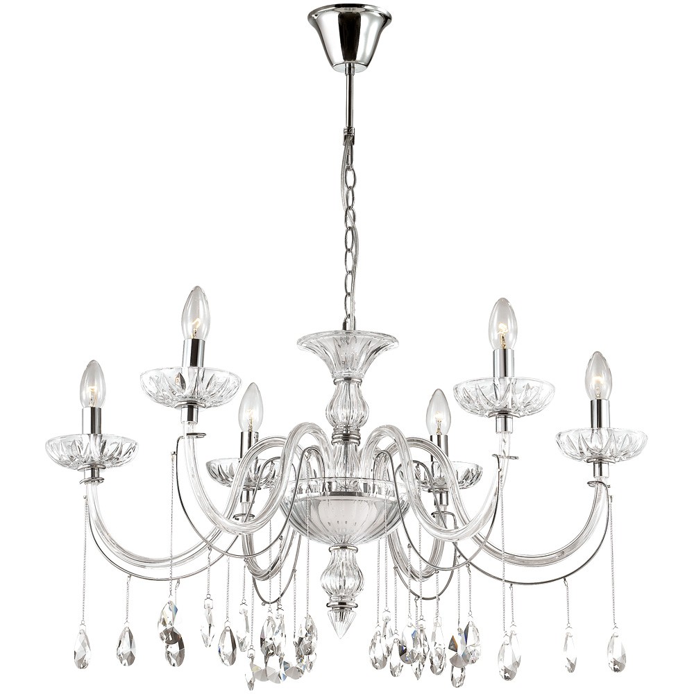 Мощность светильника также заслуживает всяческих похвал: при использовании лампочек с цоколем 6хE14 она достигает 240 Вт. Благодаря этому, можно создать оптимальную степень освещенности на площади размером до 12 кв.м. К тому же высоту люстры можно регулировать, тем самым меняя площадь освещения.