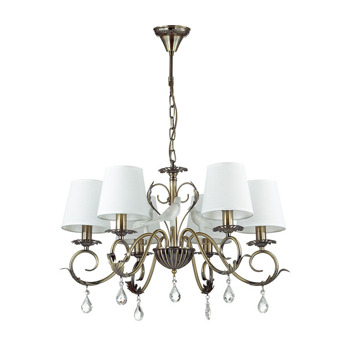 Люстра 3217/6 серии Baldani оформлена в классическом стиле. Люстра состоит из арматуры классического бронзового цвета, украшенной хрустальными подвесками и декоративными фигурками птичек, и тканевых абажуров белого цвета. Очень элегантная традиционная модель станет непревзойденным украшением Вашей комнаты.