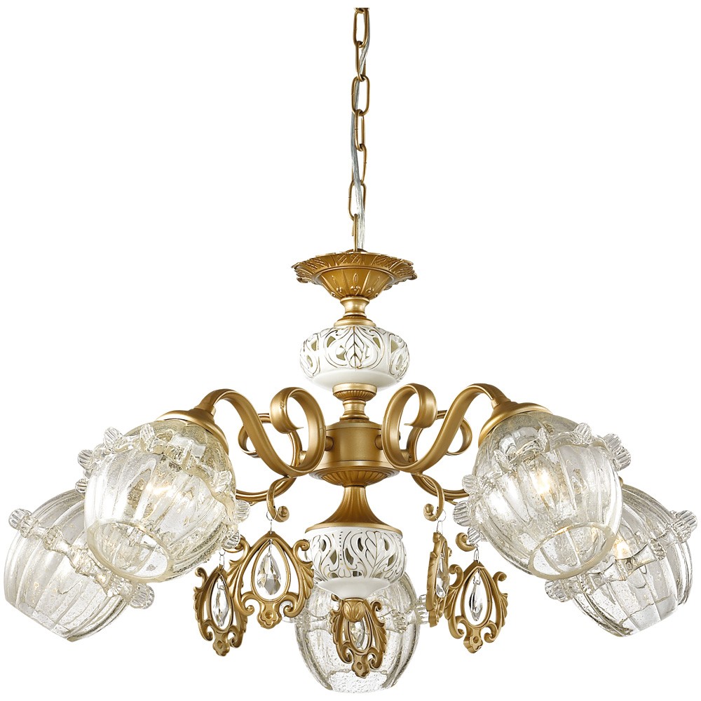 Подвесная люстра выполнена в соответствии со всеми стандартами качества по последним технологиям производства. Список достоинств данной люстры довольно обширен: высокая функциональность, прекрасный внешний вид, долговечность, высокое качество сборки и прочность материалов изготовления. Основание изготовлено из металла, а плафоны – из стекла. Дизайн данной модели выполнен в рамках стиля классика, для него характерны продуманность и приятная цветовая гамма. Мощность светильника также заслуживает всяческих похвал: при использовании лампочек с цоколем 5хE14 она достигает 300 Вт. Благодаря этому, можно создать оптимальную степень освещенности на площади размером до 15 кв.м. К тому же высоту люстры можно регулировать, тем самым меняя площадь освещения.