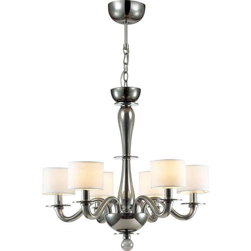 В основе подвеса Laura 4196/6 лежит красивейшая классическая люстра с белоснежными плафонами из нежной ткани. Центральная штанга скрыта декоративными элементами из матового стекла. Стильные рожки из серого выдувного стекла поддерживают элегантные плафоны из белой ткани. Нижняя часть люстры хромового цвета скрыта красивой полусферой из матового стекла, из которой выходят рожки и тянутся вверх. Декоративные элементы из круглого плоского стекла, визуально делят светильник на три части. Все это изумительно сочетается и представляет собой отличный вариант для украшения своего интерьера. Цвет арматуры хром.