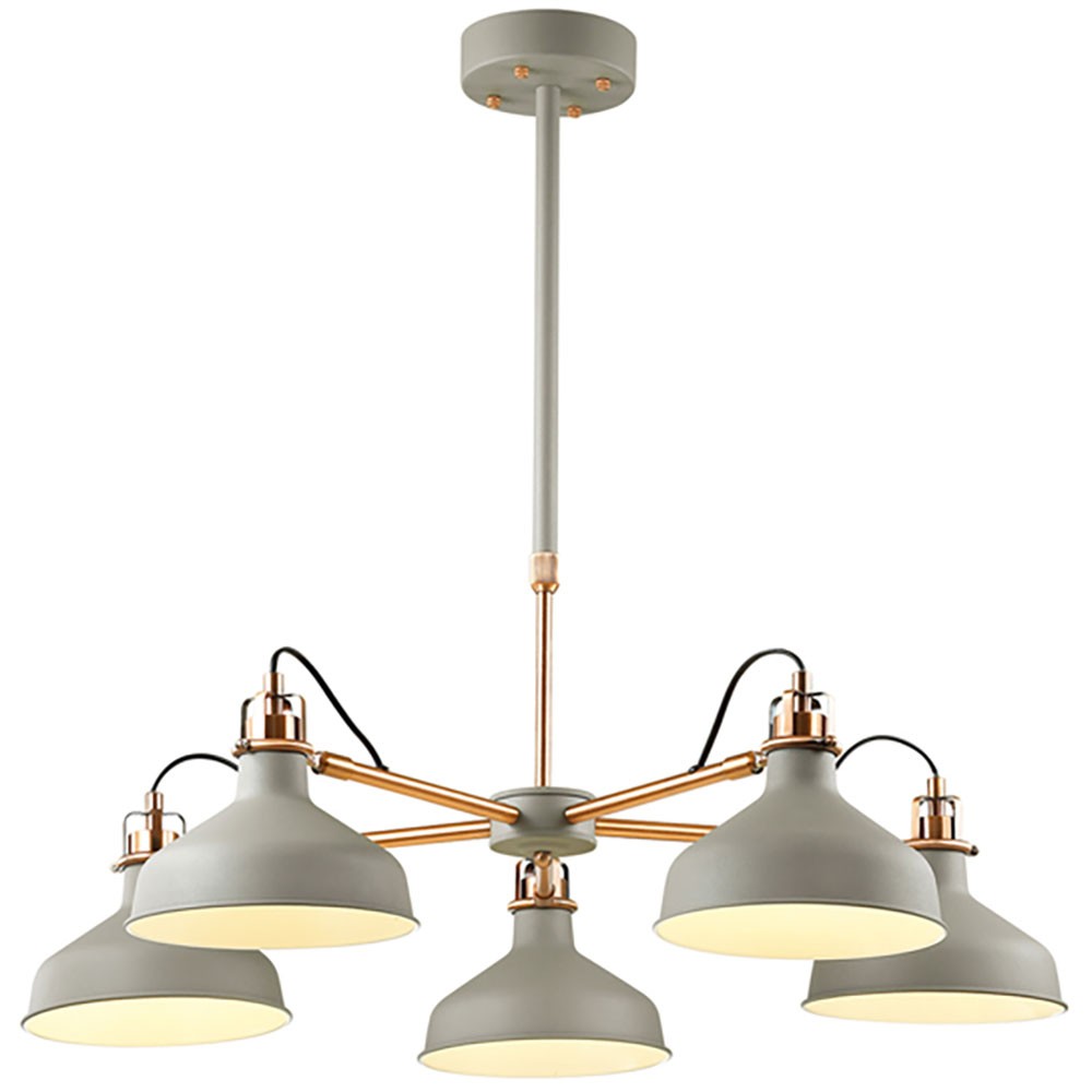 Современный дизайн люстры Odeon Light Lurdi 3330/5 впишется в интерьеры, выполненные в стиле хай-тек или минимализм. Конструкция светильника состоит из телескопического штатива и прикрепленных к нему стержней, на которых расположены металлические плафоны. Широкие открытые плафоны легко регулируются и дают яркий свет. Арматура светильника выполнена из металла, имеет матовую поверхность. Металлические стержни имеют контрастную глянцевую поверхность и окрашены в медный цвет.