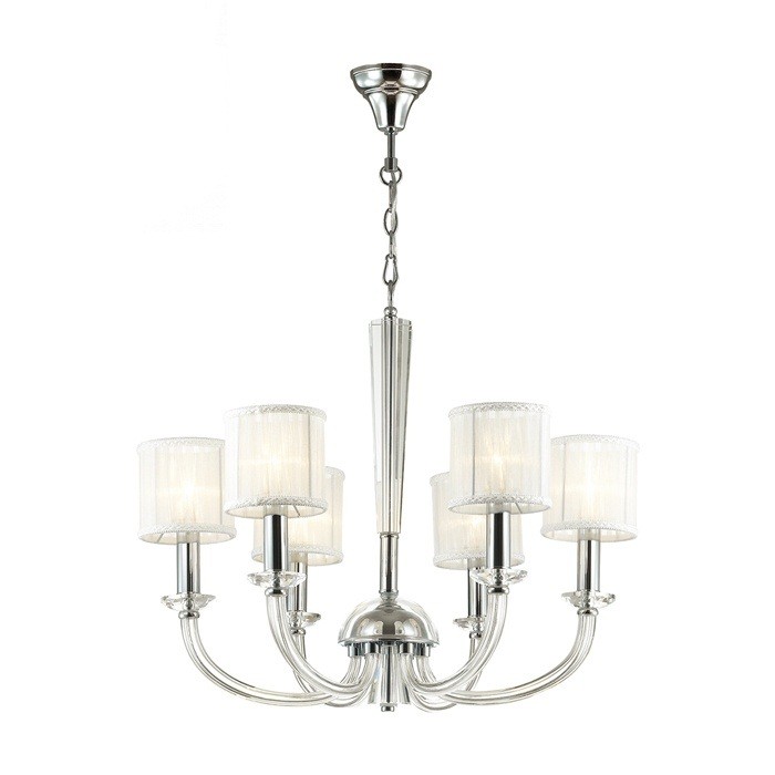 Роскошная люстра Odeon Light Malle 4197/6 выполнена из хромированного основания, прозрачных стеклянных элементов и белоснежного текстиля. Классическая форма основания и рожков дополнена и обыграна стеклянными элементами, абажуры отражают белый и яркий свет. Этот светильник из стекла словно раскрывает волшебные свойства света и наполняет дом прекрасной атмосферой.