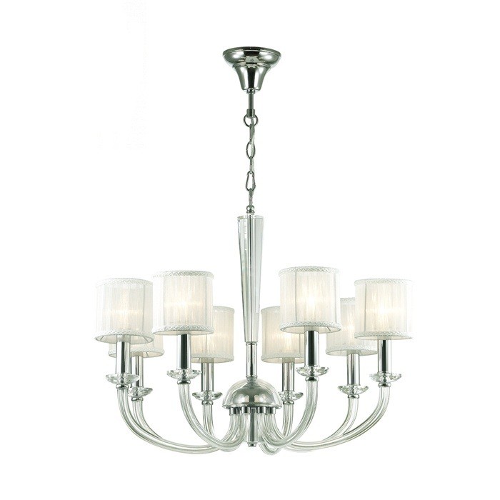 Роскошная люстра Odeon Light Malle 4197/8 выполнена из хромированного основания, прозрачных стеклянных элементов и белоснежного текстиля. Классическая форма основания и рожков дополнена и обыграна стеклянными элементами, абажуры отражают белый и яркий свет. Этот светильник из стекла словно раскрывает волшебные свойства света и наполняет дом прекрасной атмосферой.