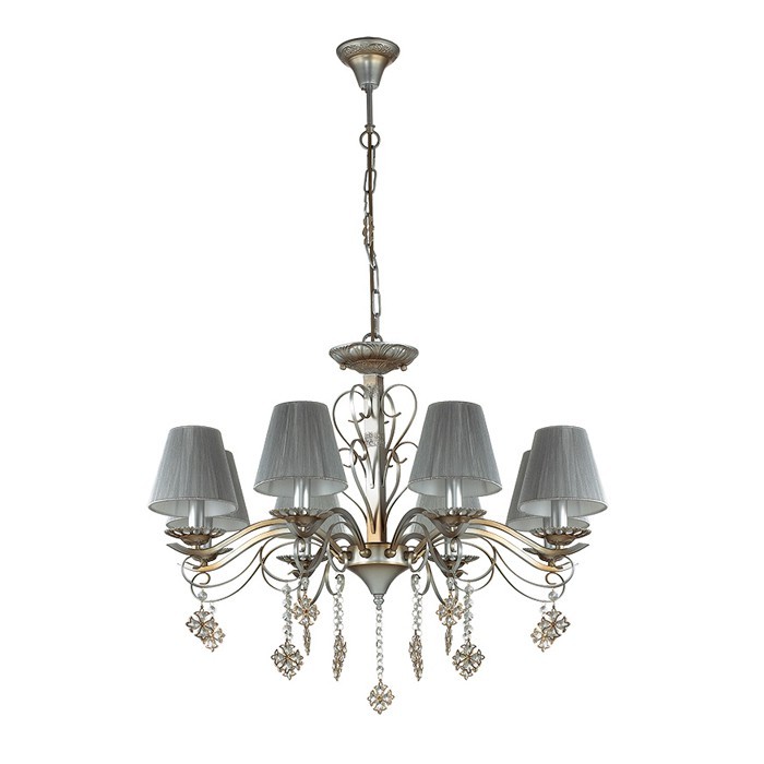 Подвесная люстра Narsissa 3462/8, рассчитанная на освещение площади в 16 кв. м. Стильный декор с использованием черт в стиле классика позволяет устройству быть эффектным аксессуаром, а не просто источником света. Подразумевается использование лампочек с цоколем 8xE14 и общей мощностью в 320 Вт. Для изготовления прибора использованы: металл – для корпуса, ткань – для плафона. Светильник крепится на металлический крюк и может подключаться к диммеру для более плавной регулировки света.