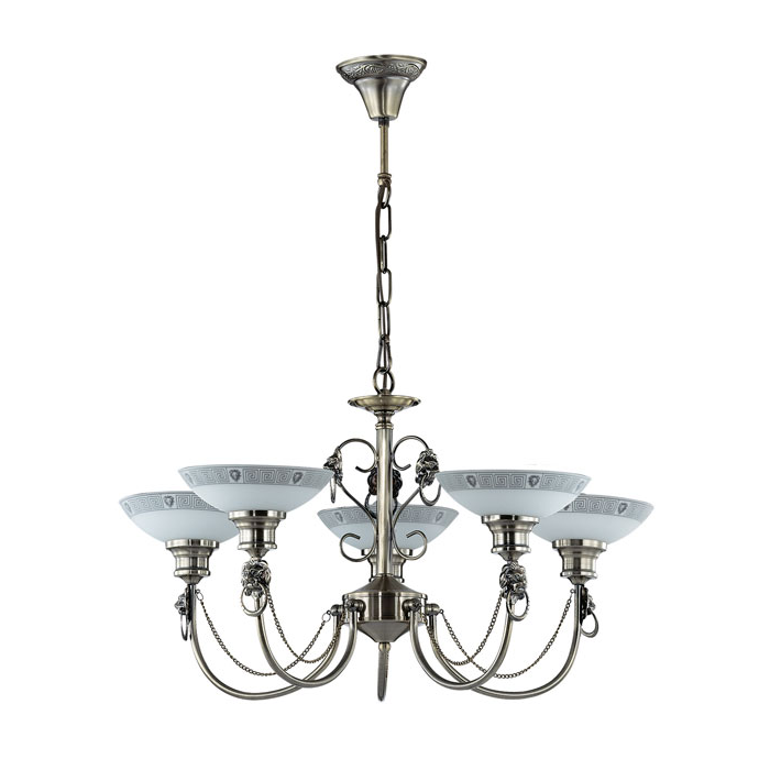 Люстра 3213/5 серии Rene оформлена в классическом стиле. Люстра состоит из стеклянных плафонов и оригинальной бронзовой арматуры, украшенной металлическими элементами в виде фигурок льва. Данная модель обладает элегантной монументальностью, гармонично сочетающейся со строгой классикой.