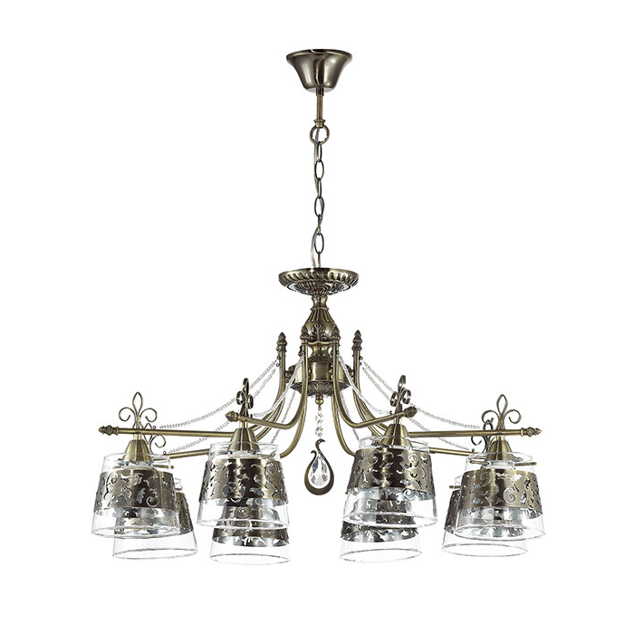 Подвесная люстра Sansa 3127/8 – настоящее сочетание качества, стиля и надежности. Данный прибор обладает достаточно высокой мощностью в 320 Вт, что позволяет создавать прекрасное освещение на участке площадью в 16 кв.м. При этом необходимо использовать лампочки с цоколем 8xE14.