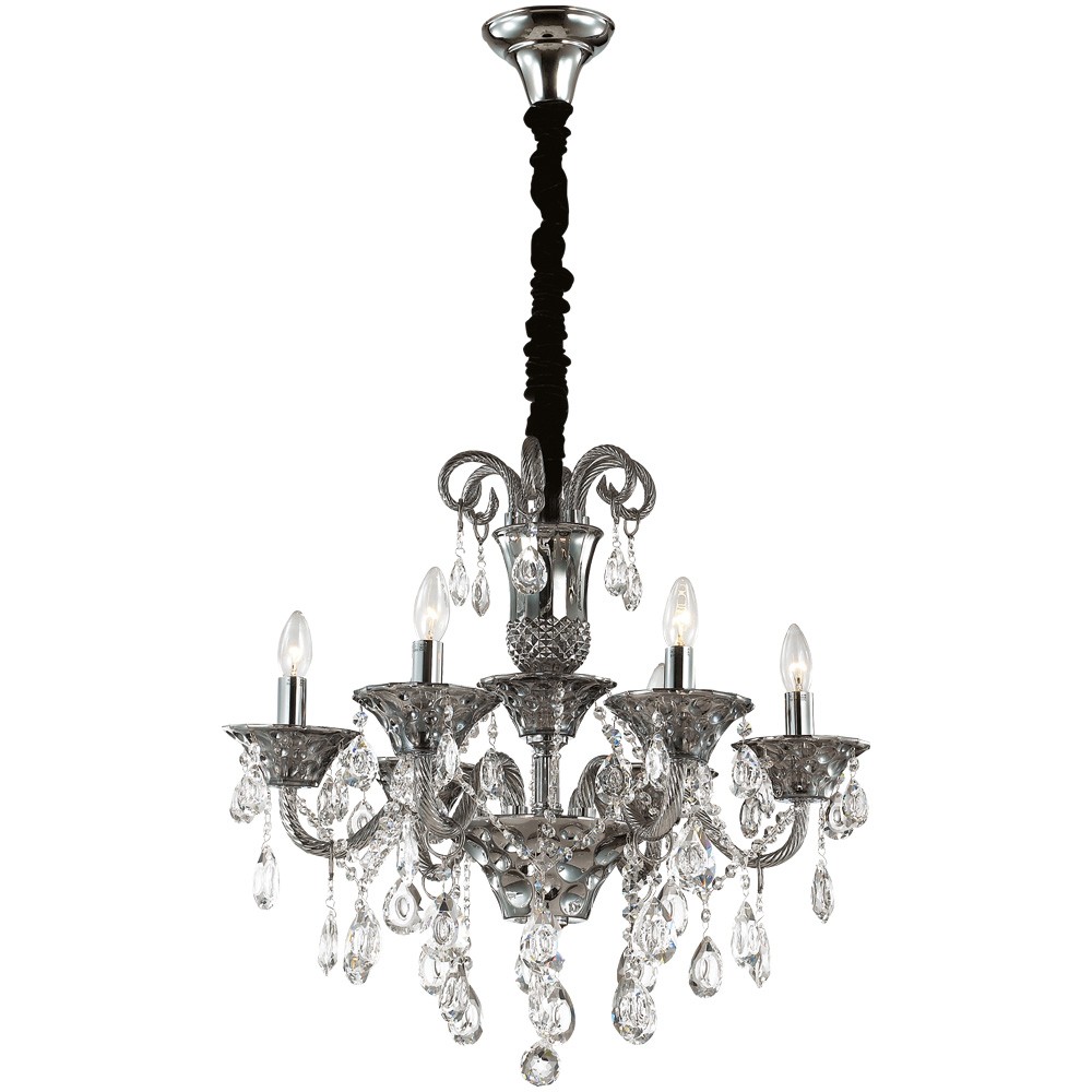 Люстра 2940/6 серии Valensa оформлена в классическом стиле. Вензеля из темно-серого стекла и множество хрустальных подвесок придают данной модели роскошь исполнения, цвет покрытия базы хром. Мощность светильника также заслуживает всяческих похвал: при использовании лампочек с цоколем 6хE14 она достигает 240 Вт. Благодаря этому, можно создать оптимальную степень освещенности на площади размером до 12 кв.м. К тому же высоту люстры можно регулировать, тем самым меняя площадь освещения.