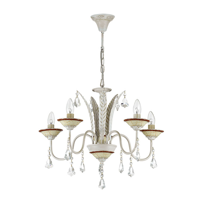 Люстра 3218/5 серии Vasco оформлена в классическом стиле. Люстра состоит из нежной пастельно белой с золотой патиной арматуры, украшенной хрустальными подвесками, с декоративными блюдцами под лампу-свечку. Необыкновенная, восхитительная модель, которая создаст невероятно нежную атмосферу в доме.
