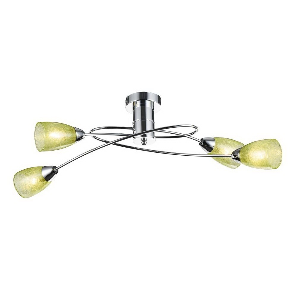 Люстра потолочная FR103-04-GN, оформлена в современном стиле, выглядит почти воздушной и легко сочетается с другими элементами обстановки. Симпатичные стеклянные плафоны зеленого цвета прекрасно смотрятся с хромированной металлической арматурой. Этот светильник способен создавать освещенную зону площадью в 8 кв. м, поскольку обладает мощностью в 160 Вт. Цоколь лампочек – 4xE14.