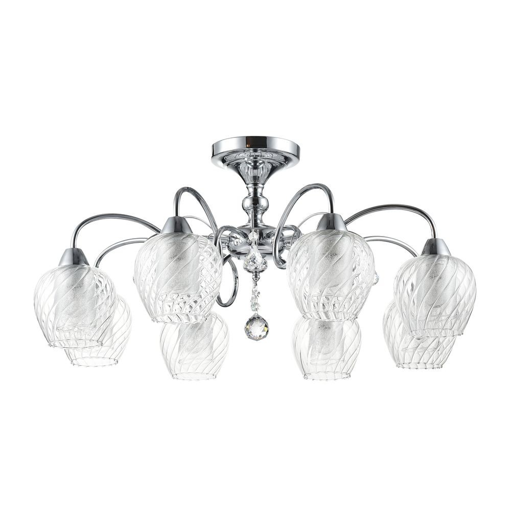 Люстра потолочная с хрустальными подвесками Nora FR663-08-N имеет эффектный декор, исполненный в стиле модерн, и благородную цветовую палитру с использованием хромового и прозрачного оттенков. Светильник рассчитан на освещение площади в 16 кв. м при использовании ламп с цоколем 8xE14 общей мощностью в 320 Вт. Есть возможность подключения диммера, крепление производится на монтажную пластину.