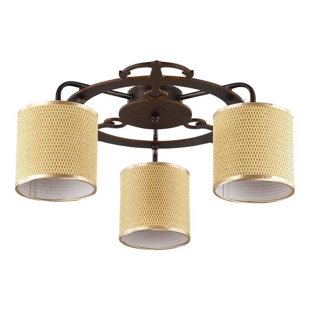 Люстра потолочная FR100-03-R оформлена в морском стиле, выглядит почти воздушным и легко сочетается с другими элементами обстановки. Симпатичные тканевые плафоны желтого цвета прекрасно смотрятся с коричневой металлической арматурой. Абажур выполнен из рогожки. Этот светильник способен создавать освещенную зону площадью в 6 кв. м, поскольку обладает мощностью в 120 Вт. Цоколь лампочек – 3xE14.