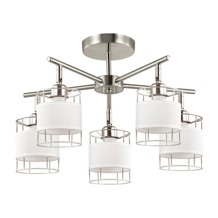 Люстра потолочная Lumion Kayden 3665/5C матовый никель E14 5х60W 220V с особым типом крепления, позволяющим создать оптимально комфортную степень освещения и максимально сэкономить пространство в небольших помещениях с невысокими потолками. Выполнена в стиле модерн и предназначена для размещения в прихожей, холле, спальне, кухне или гостиной с соответствующим стилю люстры дизайном. Высококачественные материалы, такие как металл, ткань, гарантируют долгий срок службы и бесперебойную работу изделия. Благодаря хорошей мощности светильника в 5х60 Вт, становится возможным осветить достаточно большое пространство.
