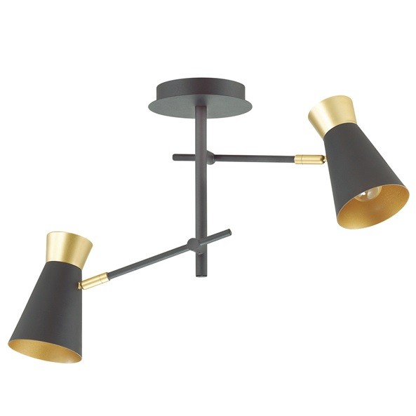 Liam - серия, сочетающая в себе элементы стиля лофт и модерн. Люстра представляет Liam 3790/2C собой потолочную металлическую конструкцию с 2 черно-золотистыми плафонами на поворотных штангах. Плафоны имеют возможность наклона для освещения комнаты в любом положении и выполнены из металла. Снаружи они черные внутри золотистые. Среди светильников из коллекции вы с легкостью сможете подобрать и вспомогательные источники света аналогичного дизайна и цветовой гаммы.