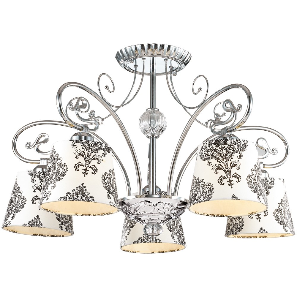 Люстра 2926/5С серии Alba выполнена в цвете хром. Светлый тканевый абажур потолочной люстры украшен ажурным орнаментом черного цвета. Помимо изысканного внешнего оформления, люстра обладает отличной производительностью. При максимальной мощности в 200 Вт она способна создать оптимальное освещение пространства площадью в 10 кв.м.
