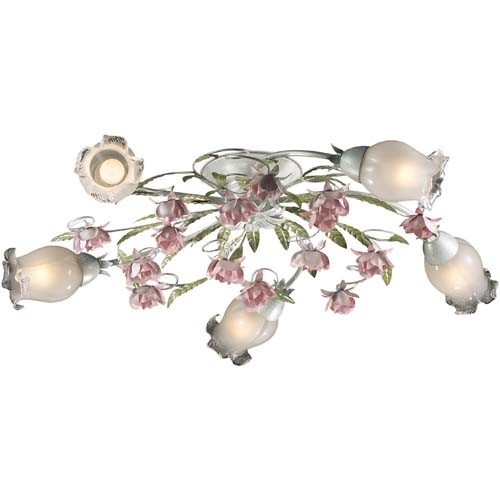 Флористические мотивы в композиции освещения – основная тема декора светильников Ameli. Изящные нежно-сиреневые розы, вместе с зелеными листьями искусно вплетенные в тонкие прутья арматуры, создают неимоверно красивую картину настоящей цветочной поляны, вольготно расположившейся под потолком.