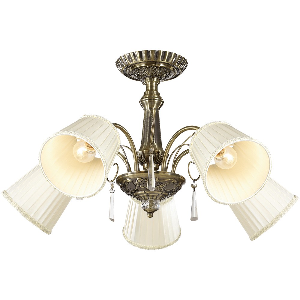Люстра 2925/5С серии Atesa выполнена в бронзовом цвете. Светлый тканевый абажур потолочной люстры украшен окантовкой из тесмы, декоративные элементы выполнены в виде хрустальных подвесок. Помимо изысканного внешнего оформления, люстра обладает отличной производительностью. При максимальной мощности в 200 Вт она способна создать оптимальное освещение пространства площадью в 10 кв.м.