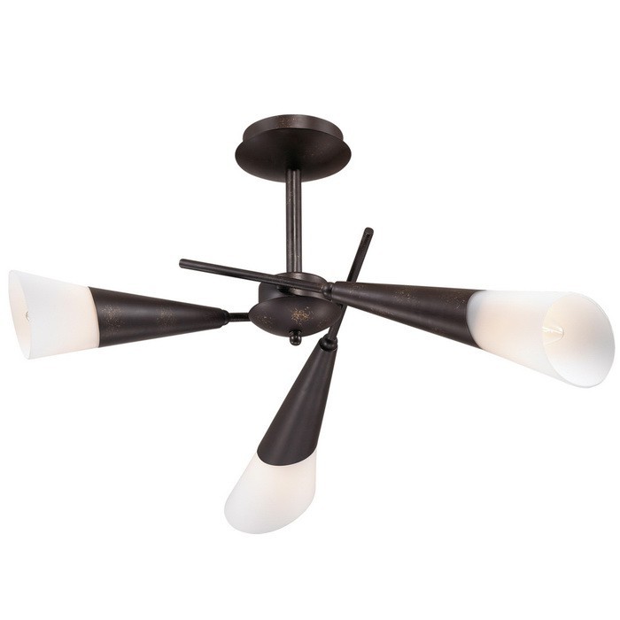 Потолочная люстра Odeon 2464/3С выполнена в темно-коричневой палитре с контрастным золотым вкраплением. Ее плафоны имеют интересный и несколько необычный вид. Их конусообразную форму образуют металлические детали корпуса, а собственно стеклянный плафон является лишь их продолжением. Каждый плафон напоминает по форме стрелу с широким белым ободом. Стрелы-плафоны направленны в стороны, обеспечивая равномерное освещение во всем помещении.