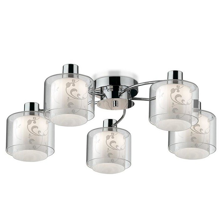Блеск хрома и стекла наилучшим образом выражен в люстре Odeon 2210/5С. Ее пять плафонов одеты в двойные одежды: белые и прозрачные. Внутренний плафон молочно-белого цвета хорошо рассеивает свет, делая освещение мягким и приятным, а верхний прозрачный стеклянный плафон придает светильнику нарядный и праздничный вид.