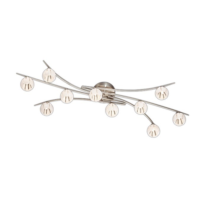 Люстра Odeon 2465/10С из коллекции Kinston изящна и легка. Шесть тонких хромированных прутьев, на которых закреплены миниатюрные лампочки, кажутся воздушными. Расположенные двумя пучками по обе стороны от места крепления, они хорошо освещают вытянутую комнату, визуально уравновешивая все ее стороны.