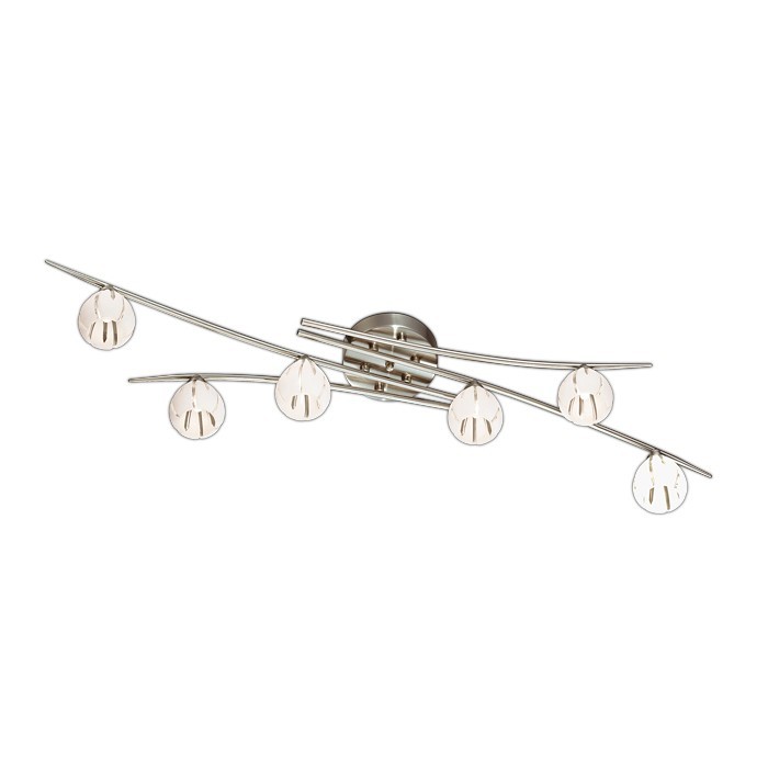 Потолочный светильник Odeon 2465/6С выглядит изящным и легким. Он состоит из четырех тонких металлических прутьев, на которых и закреплены миниатюрные плафоны. Круглые хромированные прутья направлены в противоположные стороны, создавая прямоугольную форму зоны освещения. Расположенные на них источники света обеспечивают оптимальное освещение вытянутых или прямоугольных помещений. Небольшие белые плафоны круглой формы хорошо рассеивают свет, создавая приятное мягкое освещение.