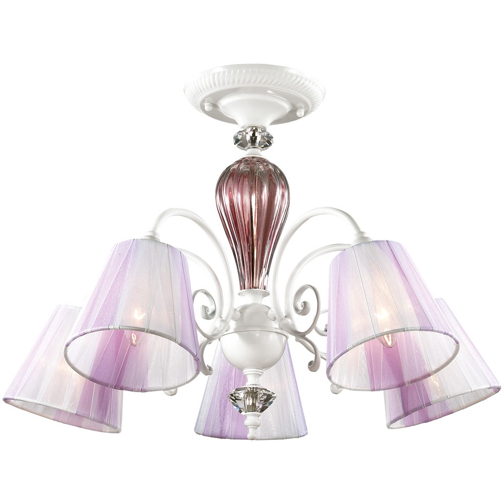 Потолочная люстра отличается особенным способом крепления к поверхности потолка, благодаря которому максимально экономится пространство. Одним из достойных примеров таких осветительных приборов является потолочная люстра 2889/5C. Данная модель относится к линейке светильников под названием Madina, оформленной в популярном сегодня стиле прованс. Плафоны из ткани фиолетового цвета особенно изящно выглядят в сочетании с арматурой из металла. Помимо изысканного внешнего оформления, люстра обладает отличной производительностью. При максимальной мощности в 300 Вт она способна создать оптимальное освещение пространства площадью в 15 кв.м.