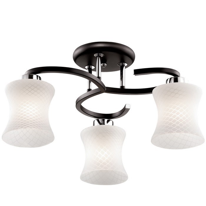 Потолочная люстра Odeon 2439/3С состоит из трех плафонов, выполненных в форме гиперболоидов. Их молочно-белая поверхность имеет легкое рельефное рифление, образующее маленькие квадраты.