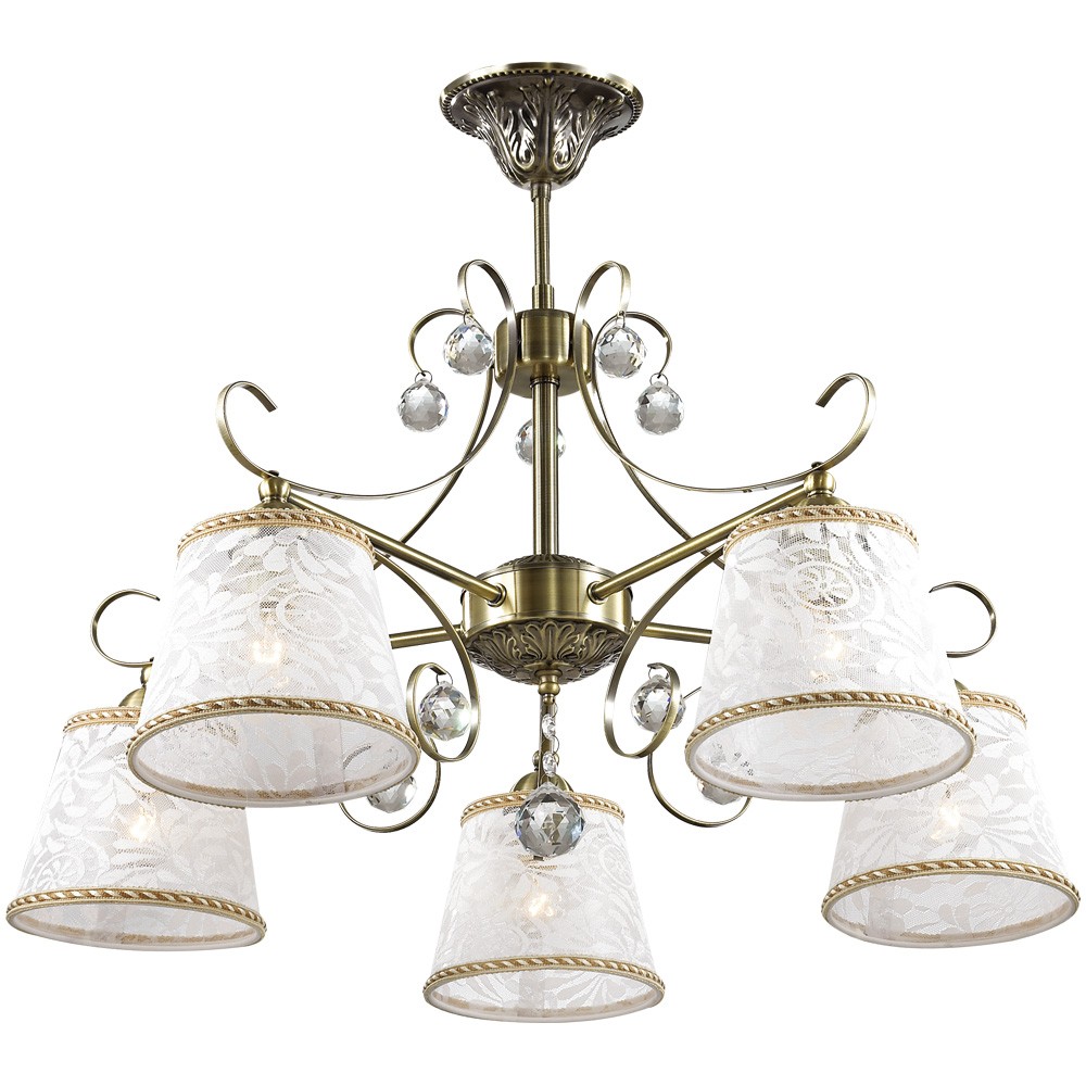Потолочная люстра отличается особенным способом крепления к поверхности потолка, благодаря которому максимально экономится пространство. Одним из достойных примеров таких осветительных приборов является потолочная люстра 2918/5С. Данная модель относится к линейке светильников под названием Tavera, оформленной в популярном сегодня стиле модерн. Люстра выполнена в бронзовом цвете. Светлый тканевый абажур потолочной люстры украшен ажурным рисунком, декоративные элементы выполнены в виде хрустальных подвесок. Помимо изысканного внешнего оформления, люстра обладает отличной производительностью. При максимальной мощности в 200 Вт она способна создать оптимальное освещение пространства площадью в 10 кв.м.