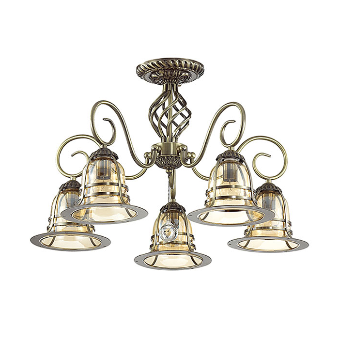 Люстра потолочная 3243/5C серии Rebecca оформлена в классическом стиле. Люстра состоит из стеклянных плафонов нетривиальной формы с металлической окантовкой и бронзовой арматуры, украшенной металлическим ажурным элементом. Данная модель благодаря своему дизайну окунет Вас в романтику морских путешествий.