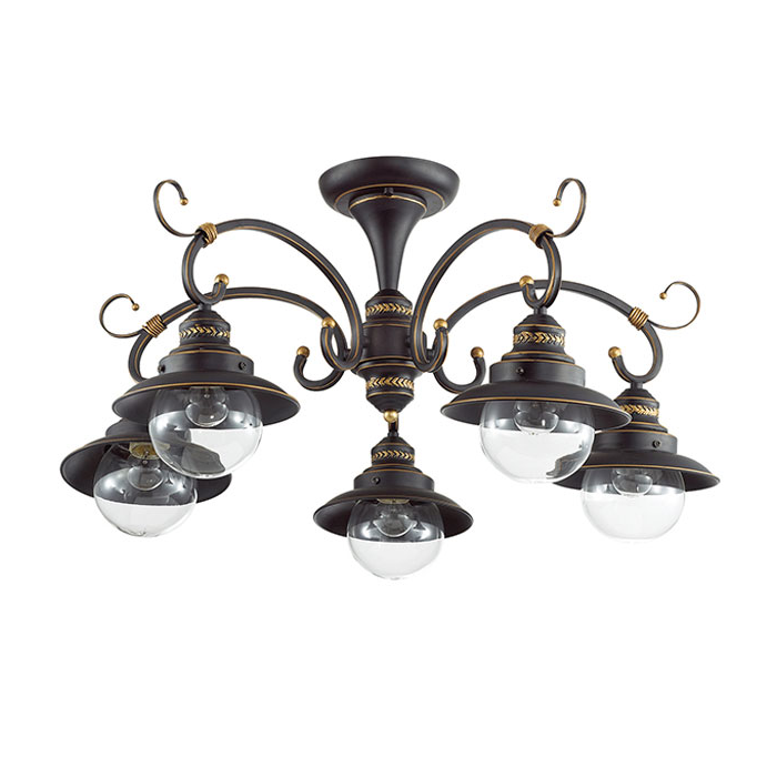 Люстра потолочная 3249/5C серии Sandrina оформлен в морском стиле. Светильник состоит из стеклянного прозрачного плафона в форме сферы и оригинальной арматуры кофейного цвета, украшенной ажурными металлическими элементами. Данная модель великолепно бы смотрелась на палубе пиратской шхуны, но в наше время прекарсно украсит любой современный интерьер.