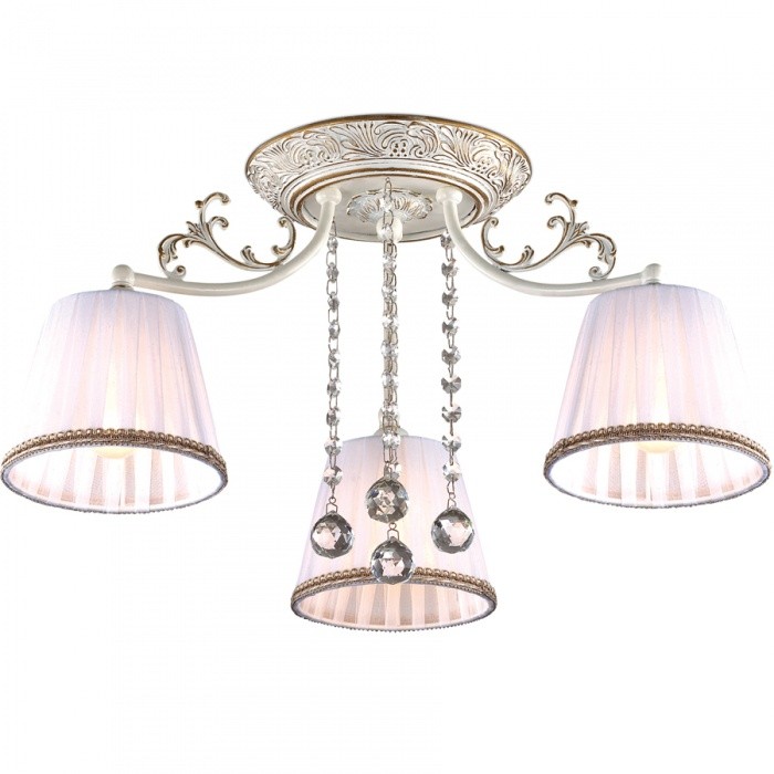 Потолочная люстра 2697/3C, относится к линейке светильников под названием Veado, оформленной в популярном сегодня стиле классика. Плафоны из органзы белого цвета особенно изящно выглядят в сочетании с арматурой из металла. Помимо изысканного внешнего оформления, люстра обладает отличной производительностью. При максимальной мощности в 180 Вт она способна создать оптимальное освещение пространства площадью в 9 кв.м.
