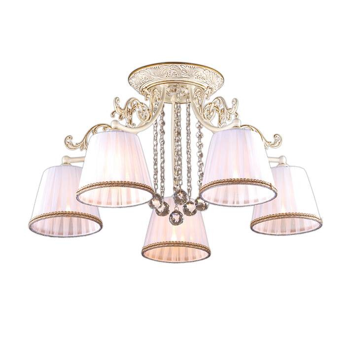 Потолочная люстра 2697/5C, относится к линейке светильников под названием Veado, оформленной в популярном сегодня стиле классика. Плафоны из органзы белого цвета особенно изящно выглядят в сочетании с арматурой из металла. Помимо изысканного внешнего оформления, люстра обладает отличной производительностью. При максимальной мощности в 300 Вт она способна создать оптимальное освещение пространства площадью в 18 кв.м.