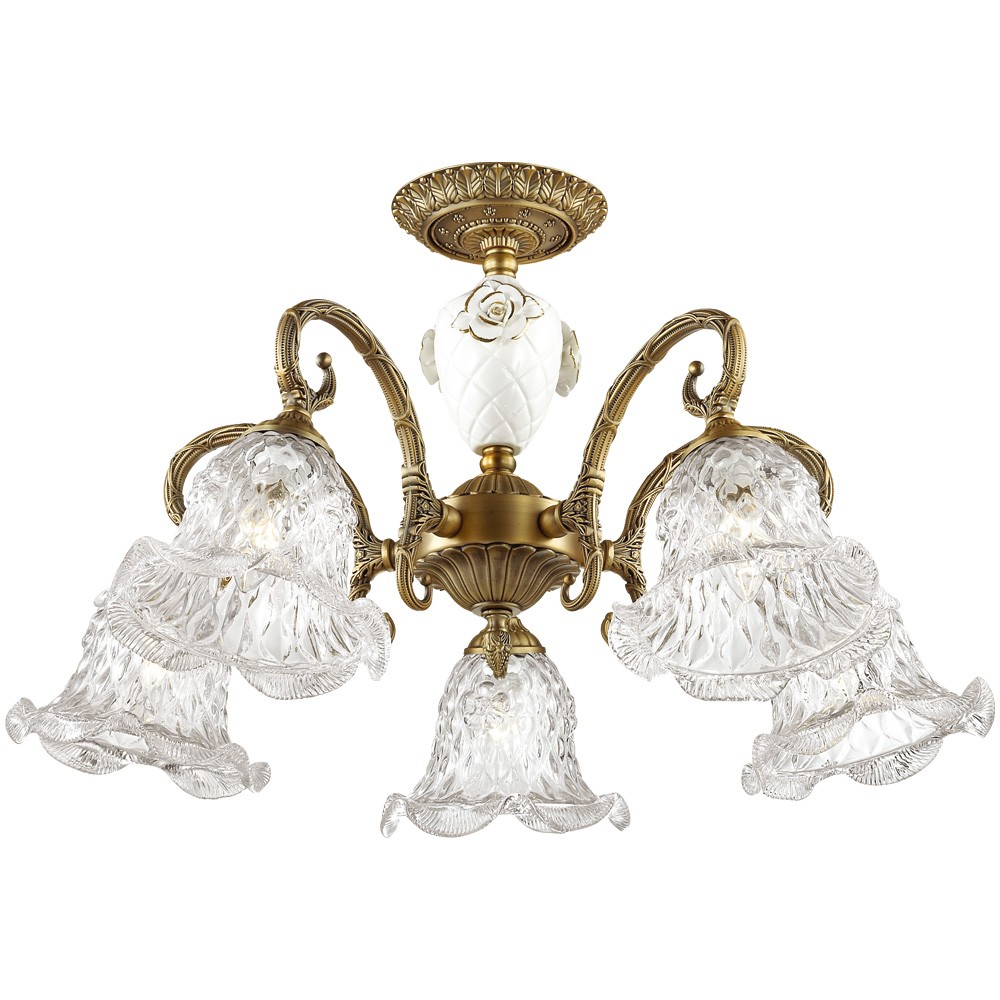 Люстра 2884/5C серии Victori выполнена в бронзовом цвете, украшена керамическим декором в виде розы, плафоны из стекла. Дизайн данной модели выполнен в рамках стиля классика, для него характерны продуманность и приятная цветовая гамма. Мощность светильника также заслуживает всяческих похвал: при использовании лампочек с цоколем 5хE14 она достигает 300 Вт. Благодаря этому, можно создать оптимальную степень освещенности на площади размером до 15 кв.м. К тому же высоту люстры можно регулировать, тем самым меняя площадь освещения.