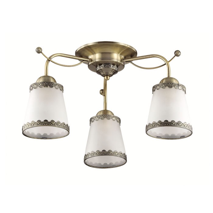 Потолочная люстра 3266/3С серии Abbi оформлена в стиле прованс. Люстра потолочная состоит из матовых молочных плафонов из стекла с ажурным металлическим декором по краям, а также арматуры цвета бронзы. Модель идеально подойдет для кабинетов или гостиных, выполненных в морском стиле. Необходимо использовать лампы с цоколем E27. Мощность 3х60W позволяет освещать территорию площадью до 9 кв. м ровным, приятным светом.