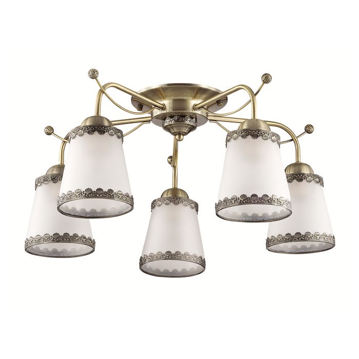 Потолочная люстра 3266/5С серии Abbi оформлена в стиле прованс. Люстра потолочная состоит из матовых молочных плафонов из стекла с ажурным металлическим декором по краям, а также арматуры цвета бронзы. Модель идеально подойдет для кабинетов или гостиных, выполненных в морском стиле. Необходимо использовать лампы с цоколем E27. Мощность 5х60W позволяет освещать территорию площадью до 15 кв. м ровным, приятным светом.