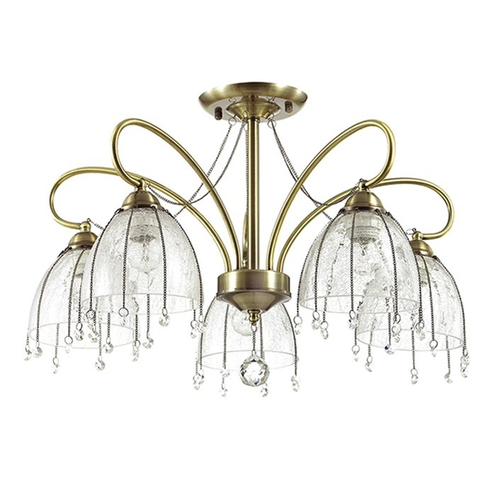 Потолочная люстра с хрусталем Arletta 3414/5C имеет стильный дизайн и идеальна для размещения в гостиной, кухне или прихожей. Отборные материалы производства и качественно сделанная электрика обеспечивают надежную работу светильника на протяжении многих лет. Основание устройства изготовлено из металла, абажур – из стекла. Для оформления декоративных элементов использован хрусталь. Благодаря мощности в 200 Вт, можно осветить пространство площадью в 10 кв.м. При этом необходимо использовать лампочки с цоколем 5xE14.
