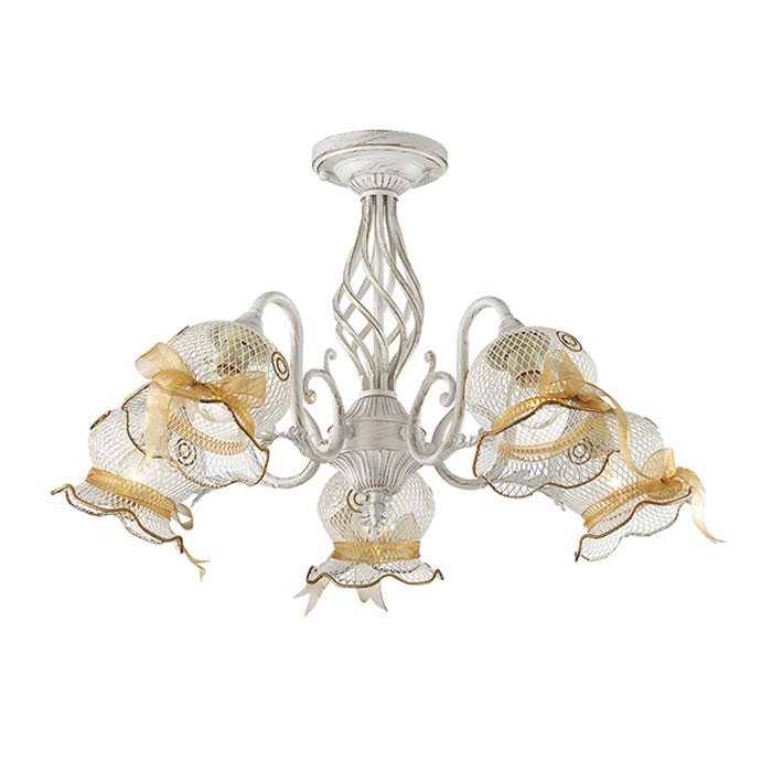 Потолочная люстра 3250/5C серии Barbissa оформлена в стиле прованс. Люстра состоит из металлических сетчатых абажуров, украшенных декоративной ленточкой и арматуры классического белого цвета, слегка декорированной золотой патиной. Данная модель прекрасно подойдет как для гостиной, так и для детской комнаты. Необходимо использовать лампы с цоколем E14. Мощность 5x60W позволяет освещать территорию площадью до 15 кв. м ровным, приятным светом.