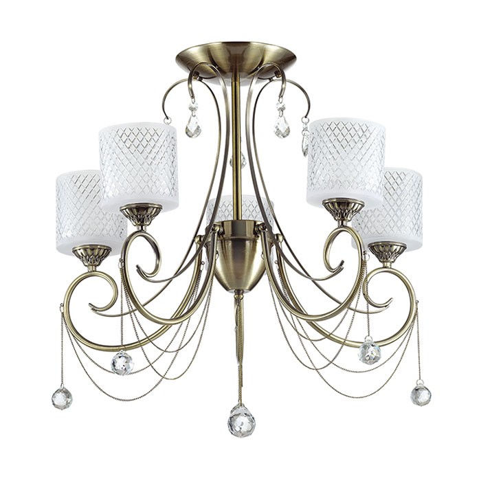 Потолочная люстра 3087/5C серии Caraffa оформлена в стиле арт-деко. Люстра состоит из плафонов из граненого стекла и классической бронзовой арматуры, щедро украшенной декоративными цепочками и подвесками из хрусталя. Данная модель каждый день будет радовать глаз. Необходимо использовать лампы с цоколем E14. Мощность 5x40W позволяет освещать территорию площадью до 10 кв. м ровным, приятным светом.