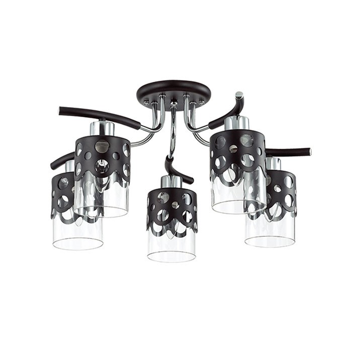 Потолочная люстра 3272/5C серии Colett оформлена в современном стиле. Люстра состоит из прозрачных стеклянных плафонов, декорированных ажурным металлом, и арматуры в современном стиле благородного цвета венге с хромовыми элементами. Данная модель отражает уже не новый, но все еще не выходящий из моды тренд на плафоны с металлическим декором, который смотрится очень стильно при любом дизайне. Необходимо использовать лампы с цоколем E14. Мощность 5x60W позволяет освещать территорию площадью до 15 кв. м ровным, приятным светом.