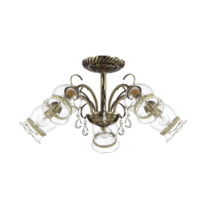 Потолочная люстра 3094/5C серии Divina оформлена в ретро стиле. Светильник состоит из стеклянных плафонов с металлической окантовкой и арматуры бронзового цвета, украшенной хрусталем. Данная модель станет прекрасным решением для кухни или небольшой гостиной. Необходимо использовать лампы с цоколем E14. Мощность 5x60W позволяет освещать территорию площадью до 15 кв. м ровным, приятным светом.