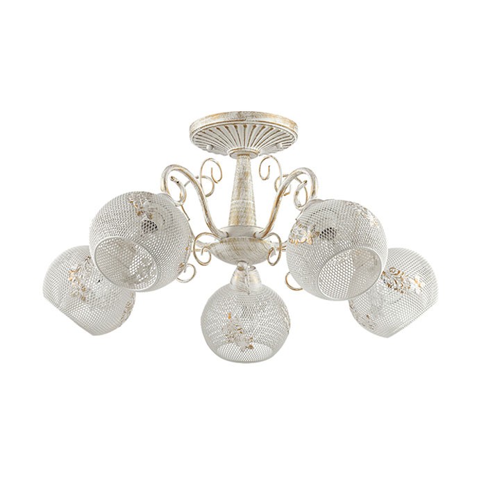 Потолочная люстра 3231/5C серии Elina оформлена в стиле прованс. Люстра состоит из металлических сетчатых абажуров с ажурным декором и арматуры белого с золотой патиной цвета. Простота линий и изгибов в данной модели дополняется незаурядностью абажуров, что и привлекает внимание. Необходимо использовать лампы с цоколем E14. Мощность 5x40W позволяет освещать территорию площадью до 10 кв. м ровным, приятным светом.