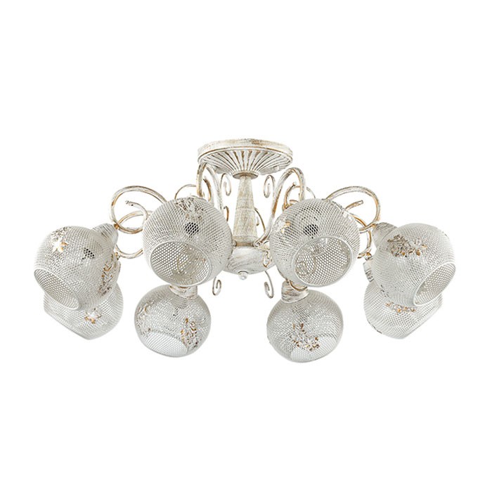 Потолочная люстра 3231/8C серии Elina оформлена в стиле прованс. Люстра состоит из металлических сетчатых абажуров с ажурным декором и арматуры белого с золотой патиной цвета. Простота линий и изгибов в данной модели дополняется незаурядностью абажуров, что и привлекает внимание. Необходимо использовать лампы с цоколем E14. Мощность 8x40W позволяет освещать территорию площадью до 16 кв. м ровным, приятным светом.