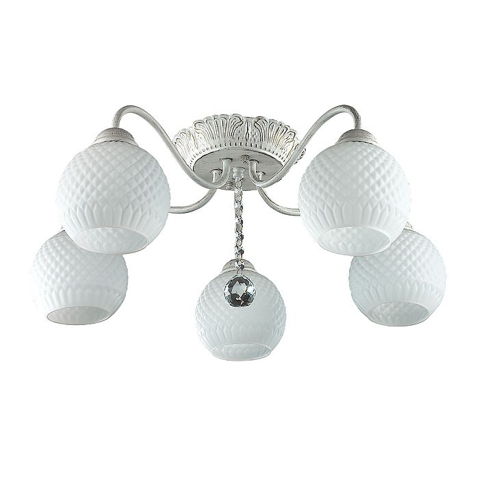 Потолочная люстра 3122/5C серии Elodia оформлена в стиле модерн. Люстра состоит из белоснежных стеклянных плафонов с объемным рисунком и арматуры белого с золотой патиной цвета, украшенной хрустальной подвеской. Каждая линия данной модели несет в себе заряд дивной зимней свежести. Необходимо использовать лампы с цоколем E27. Мощность 5x60W позволяет освещать территорию площадью до 15 кв. м ровным, приятным светом.