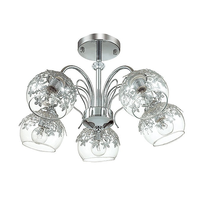Потолочная люстра 3066/5C серии Felissa оформлена в современном стиле. Люстра состоит из стеклянных прозрачных плафонов с металлическим ажурным декором и хромовой арматуры, украшенной хрустальным элементом. Данная модель уже несколько сезонов не теряет своей популярности. Необходимо использовать лампы с цоколем E14. Мощность 5x40W позволяет освещать территорию площадью до 10 кв. м ровным, приятным светом.