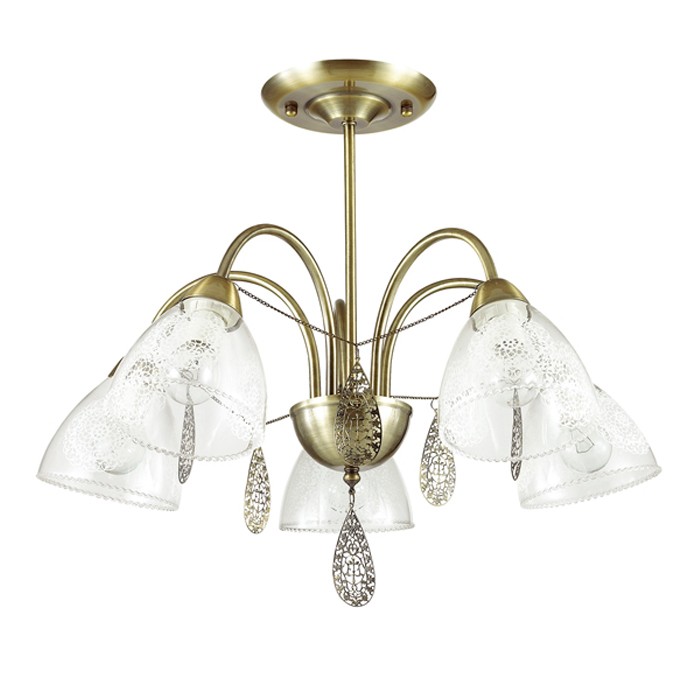 Потолочная люстра Floretta 3291/5C имеет стильный дизайн и идеальна для размещения в гостиной, кухне или прихожей. Отборные материалы производства и качественно сделанная электрика обеспечивают надежную работу светильника на протяжении многих лет. Основание устройства изготовлено из металла, абажур – из стекла. Благодаря мощности в 200 Вт, можно осветить пространство не слишком большой площади. При этом необходимо использовать лампочки с цоколем 5xE14.