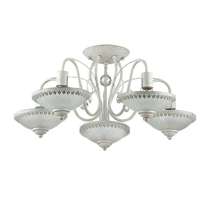 Потолочная люстра 3255/5C серии Honory оформлена в стиле модерн. Люстра состоит из необычных стеклянных плафонов, украшенных ажурным металлическим ободком и золотыми элементами, и арматуры белого с золотой патиной цвета с хрустальной подвеской в центре. Красота и грациозность - вот главные характеристики данной модели. Необходимо использовать лампы с цоколем E14. Мощность 5x60W позволяет освещать территорию площадью до 15 кв. м.