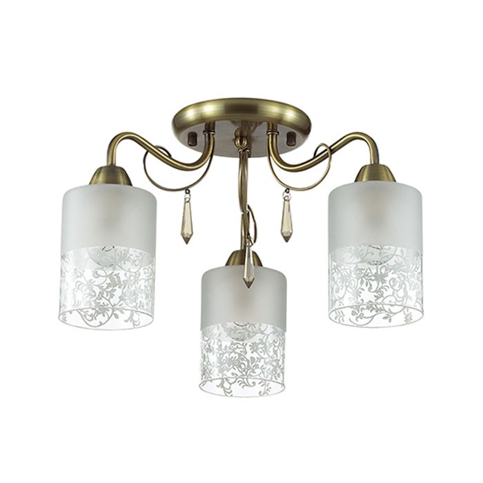 Потолочная люстра 3262/3C серии Imani оформлена в стиле прованс. Люстра состоит из стеклянных плафонов, нижняя часть которых украшена мягким вензельным рисунком, и арматуры цвета бронзы с подвесками из хрусталя. Данная модель обладает необъяснимой мягкостью и нежностью, что всегда будет блаоприятно сказываться на Вашем настроении. Необходимо использовать лампы с цоколем E14. Мощность 3x60W позволяет освещать территорию площадью до 9 кв. м ровным, приятным светом.